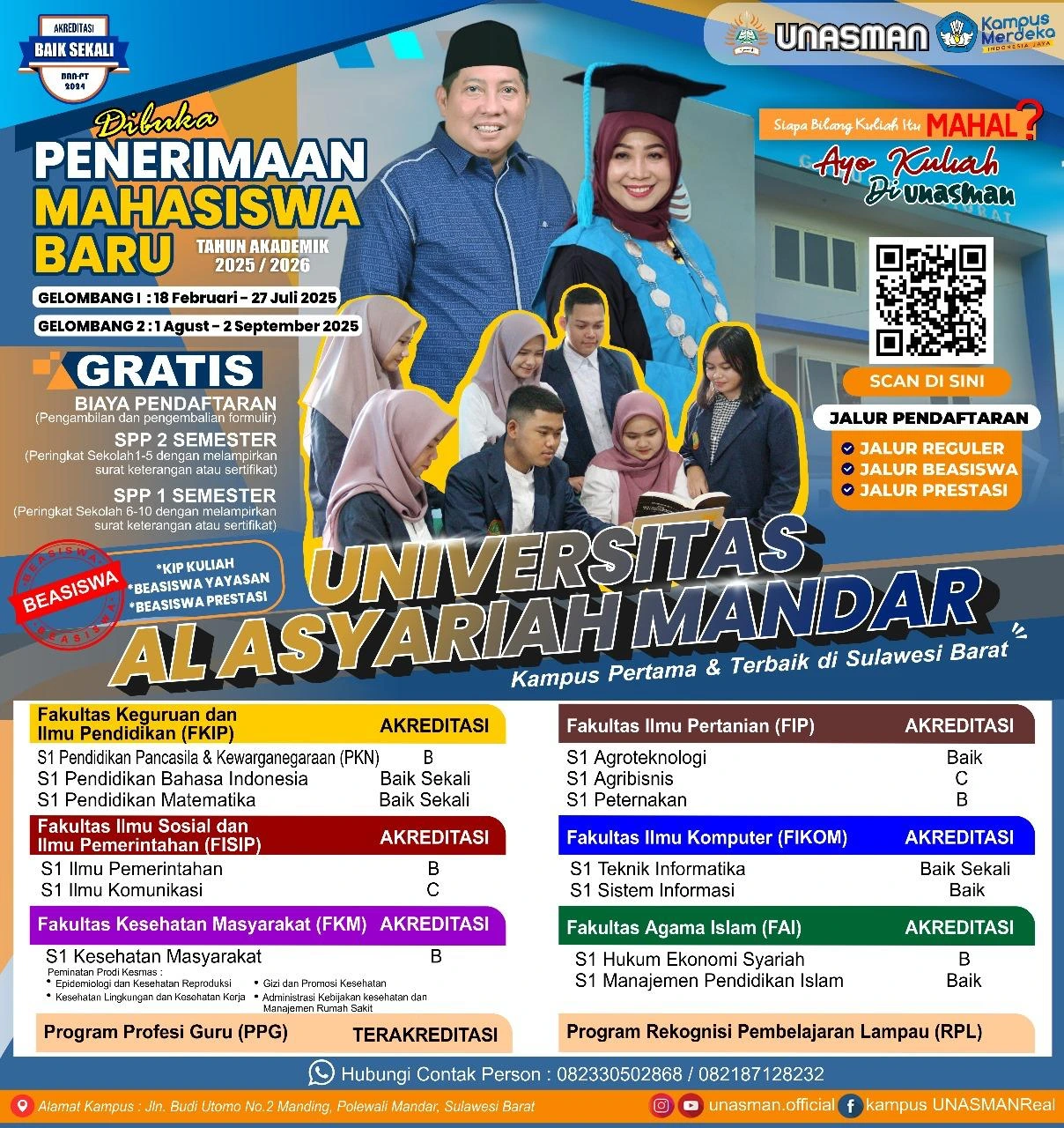Selamat datang di Universitas Al Asyariah Mandar (UNASMAN) — kampus unggulan di Sulawesi Barat yang berkomitmen mencetak generasi muda berilmu, berakhlak, dan berdaya saing global.